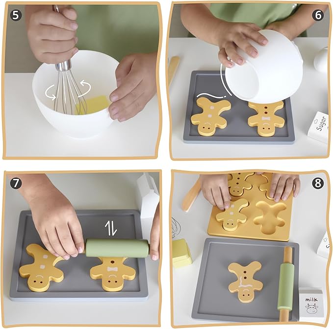 - KIDS BAKING SET - Baking time! What delicious cookies will little bakers make with this baking kit? This wooden cookie set inspires and develops imagination and creativity, providing hours of fun for your little one!