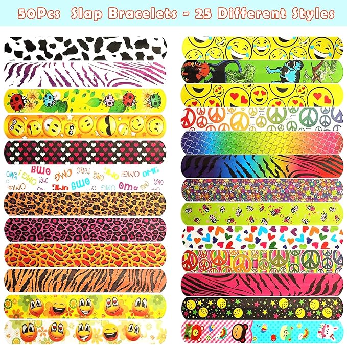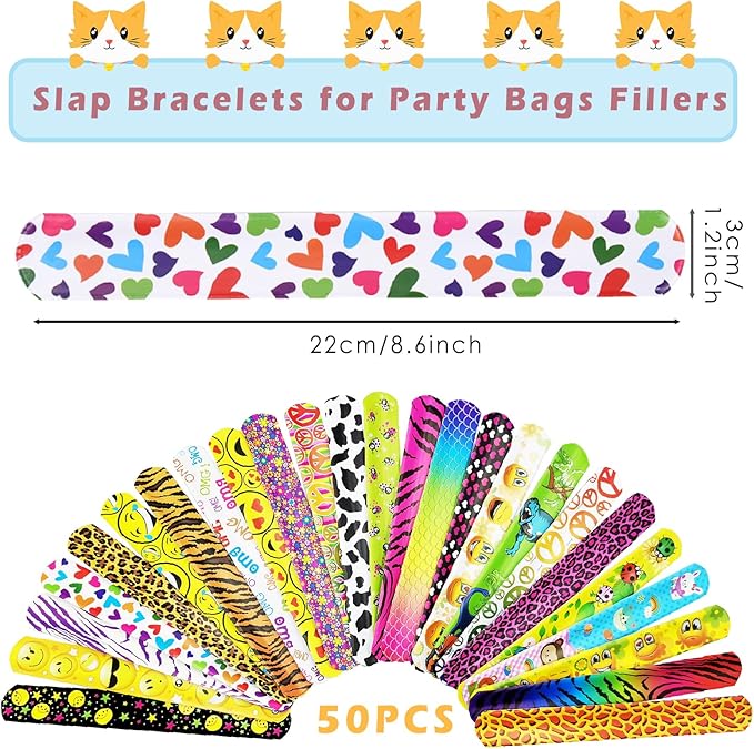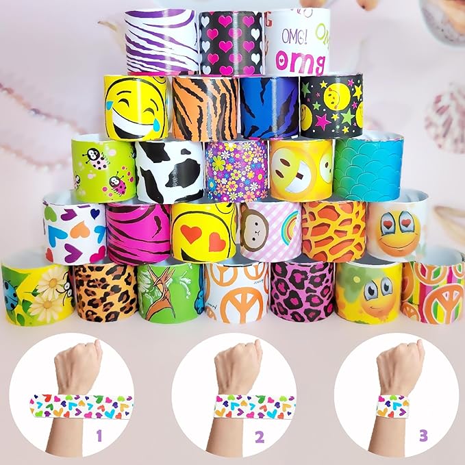 - ๐ญใ๐๐ซ๐๐๐ญ ๐๐จ๐ซ ๐๐๐ซ๐ญ๐ข๐๐ฌ ๐๐ง๐ ๐๐ฅ๐๐ฒ๐๐๐ญ๐๐ฌใWhether it's a birthday party or a playdate with friends, these slap bracelets make for an exciting and entertaining activity. Kids can trade and share their favorite designs, creating lasting memories and fostering friendship.