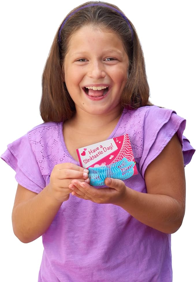 - The Original Fidget Toy: Spread some clickety-clackity love this February 14 with the Slinky Gram Seasonal Class Party Kit, which includes mini-Slinky spring toys in bright colors and shapes.