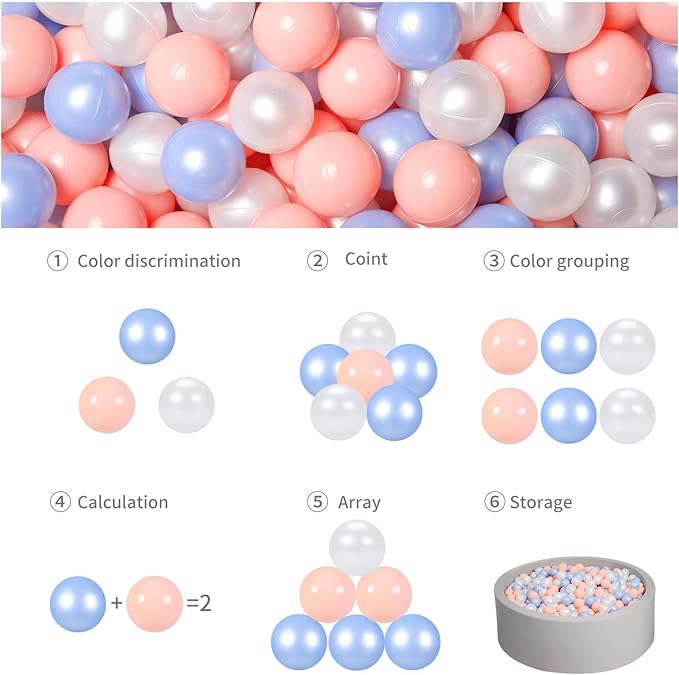 - FULL OF FUN - Bright colors will attract your children and keep them entertained for hours. Grasping, throwing, even shooting a basket in the pool. You can also choose match the color to your playroom decor.