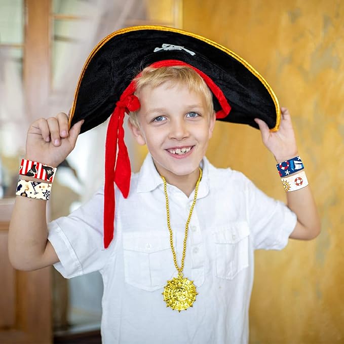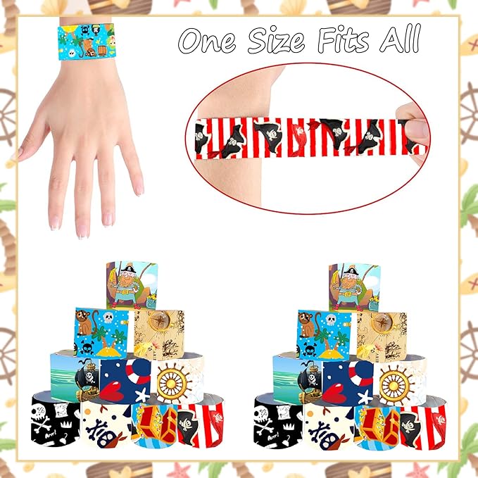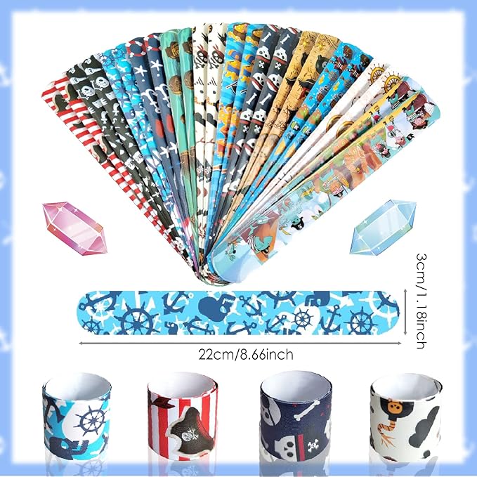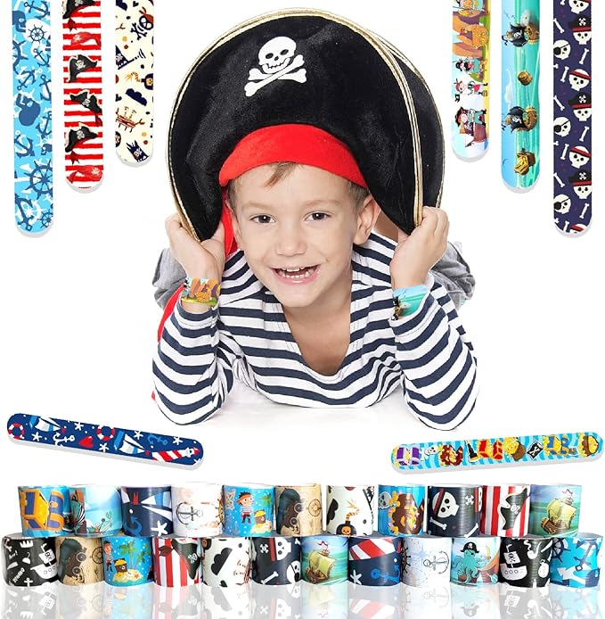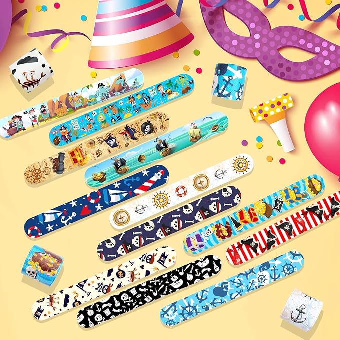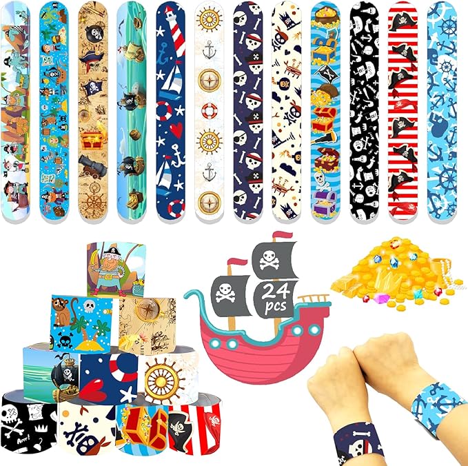 Viicoor 24 PCS Slap Bracelets Pirates Snap Bracelet Wrisrtband for Party Favors Basket Bag Filler School Prizes Birthday Exchanging Gifts Goodies Gadget Bulk (14-Pirates-24PCS)