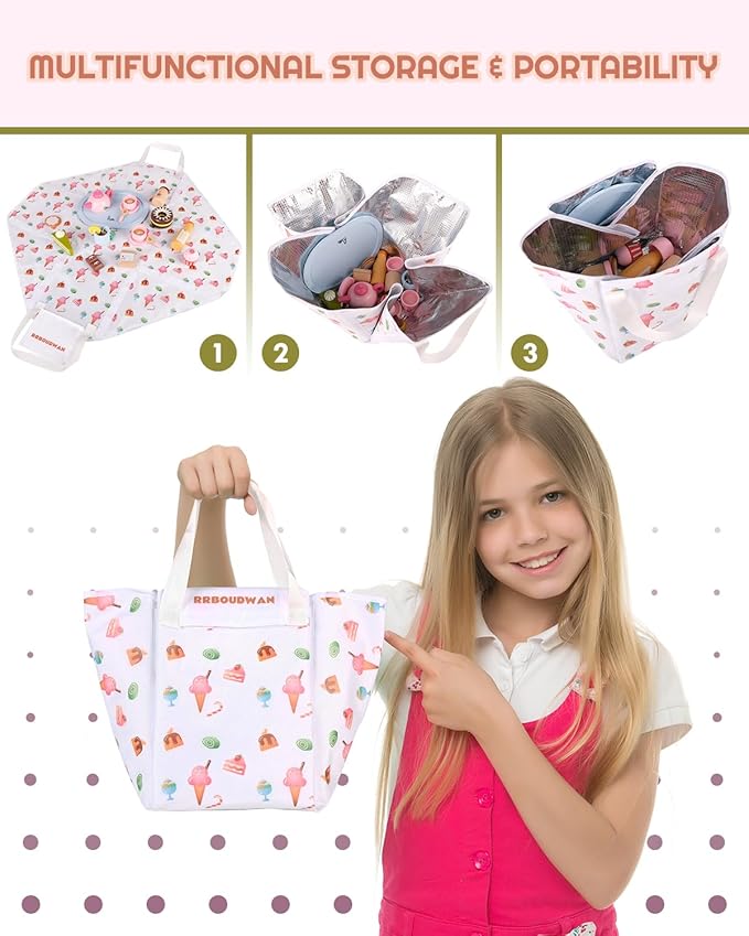 • 【 PORTABLE & MULTIFUNCTIONAL 】We customized a personalized handbag that can hold all the accessories of this wooden play food set. This handbag can unfold into a picnic mat, so children can enjoy this toddler tea set whether at home or on the go
