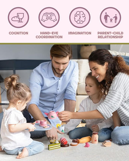 Wooden Tea Sets for Toddlers 3-5, Tea Party Set for Little Girls 4-6, Tea Set Wooden Play Food Set, Kids Kitchen Accessories 2 Year Old Girl Gifts