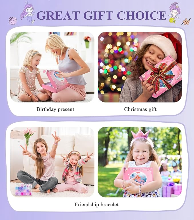 - Add More Ocean Charm Pendants and Bead Styles: The mermaid bead kit contain a variety of charm pendants, including mermaid girls, mermaid tails, starfishes, seashells, rainbows, pearls, butterfly, heart, etc. Also added more ocean pearl beads, heart beads and shell beads, to provide more bead style and color options. Kids can give full play to their imagination and create their own unique works.