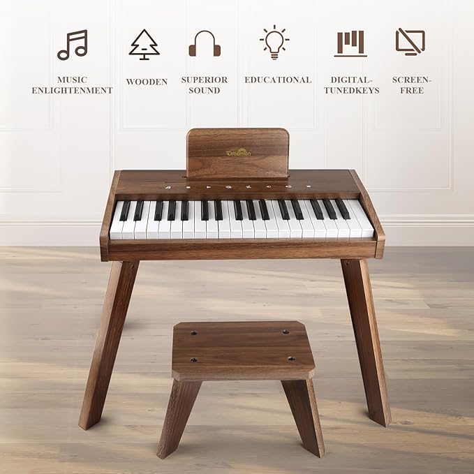 Dreamon Kids Digital Piano Keyboard, Music Educational Instrument Toy, Wood Piano for 3+ Girls and Boys, Christmas & Birthday Gifts for Kids Ages 6-12 Years Old