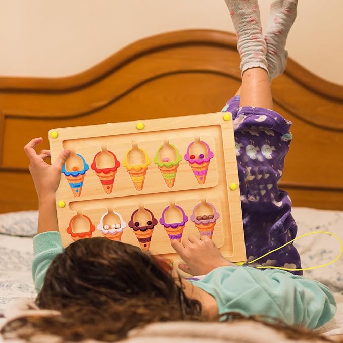 Ice Cream Magnetic Color and Number Maze, Montessori Color Sorting Puzzles Game for Kid, Counting Matching Board Toys, Learning Motor Skill Toy Gift for Boys Girls Toddlers Preschool 3 4 5 Years