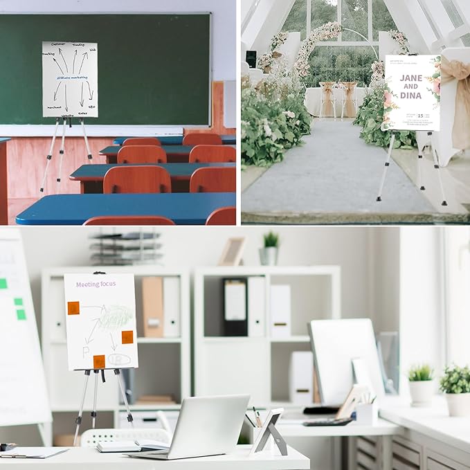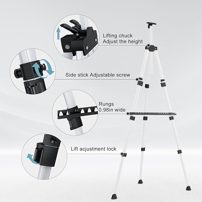 - Non-slipand sturdy easel stand for display of painting canvas, weddings, signs,drawing - Portable easel stand adopts stable triangular structure with rubber anti-slip pads installed at the bottom of the easel for strong stability and good anti-slip performance.Adjustable easel stand has built-in flexible wheels at each legs, making it easy to adjust the direction and angle during use.
