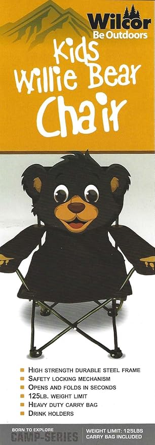 Kids Camping Chair | Folding Outdoor Chair for Toddlers | Boys or Girls | Lightweight, Portable, and Durable | Great for Beach, Patio or Sporting Events (Kids Camp Chair, Willie Bear)