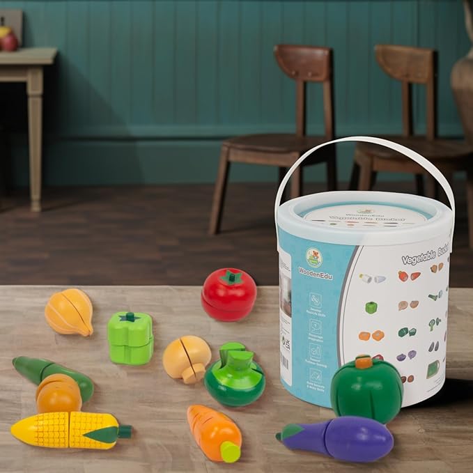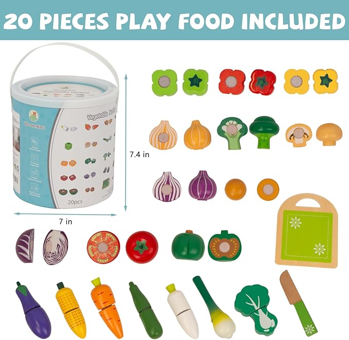 - Slicing and Dicing Fun: Elevate playtime with the Wooden Edu Wooden Cutting Vegetable Food Play Toy Set. Includes a variety of colorful veggies and a wooden knife for realistic slicing and cooking experiences.