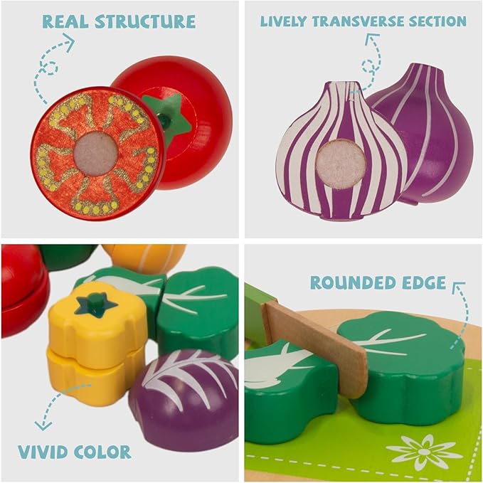 - Realistic Design: Each wooden vegetable features a lifelike appearance, complete with Velcro fasteners for safe and satisfying "cutting" sounds, providing an engaging and immersive playtime.
