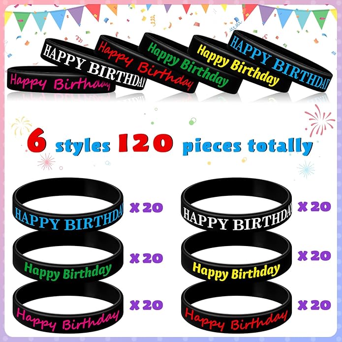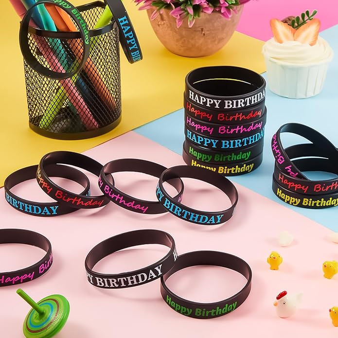 - Buy with Confidence: the happy birthday wrist bands are made of quality silicone material, sturdy and reliable, comfortable to wear, not easy to tear or break, designed in bright and vibrant colors, hard to fade, providing you with a service for a long time