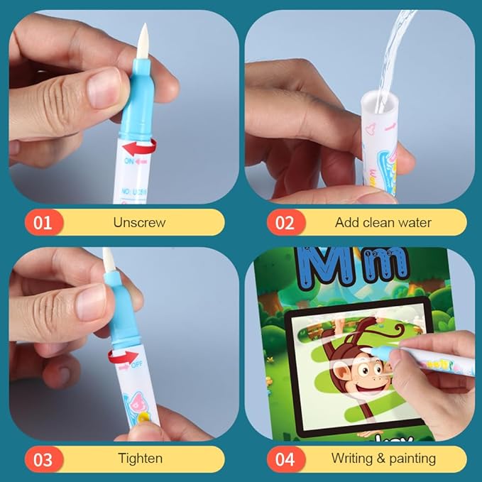 - [Educational] The toddler coloring book features various themes, such as animals, letters, and shapes. This helps them learn while having fun. You can give kids aqua art cards with a letter theme, let them color it with water, and learn the concept of letters naturally. Plus, the illustrations and fonts in the cards can improve children's reading and visual recognition skills