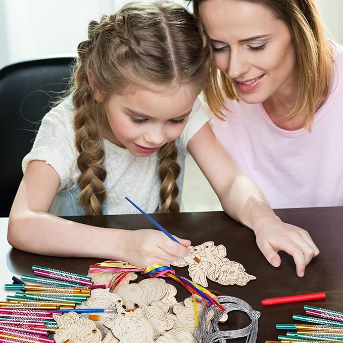 - Inspire Kids Imagination:Our with lines unicorns wind chime crafts for kid scan stimulate the imagination of children, which can assemble and design a unique wind chime with their own mind .This is a good opportunity to exercise children's eye-hand coordination and bring their initiative into full play.Allow children to have more different experiences about this wooden unicorns craft kits
