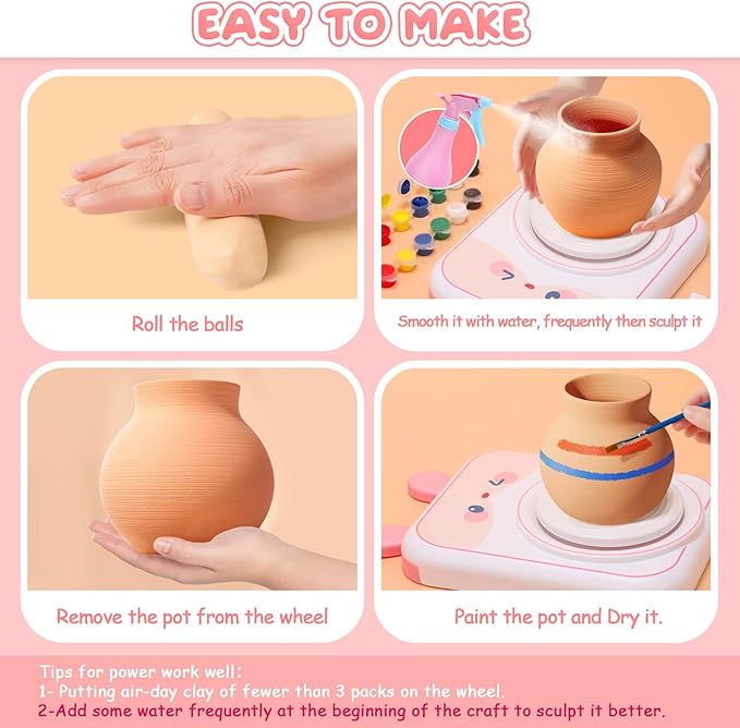 - IGNITE YOUR CHILD'S CREATIVITY WITH POTTERY WHEEL KIT FOR KIDS: Watch as their imagination takes flight and they create fascinating masterpieces. Our complete pottery wheel and painting kit is the perfect choice to spark their artistic journey! Let them experience the joy of turning on the pottery wheel,Clay Sculpting Tools, painting their creation, and embellishing it with gem stickers. They'll feel a sense of pride in every finished piece!Great easter gifts for kids!