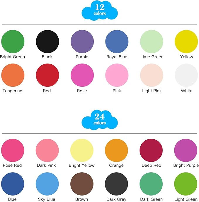 - Building Clay: 24 colors polymer clay starter kits, good ductility, arbitrary fabrication, rich colors, non-sticky, non-fading. Great for all ages honestly.