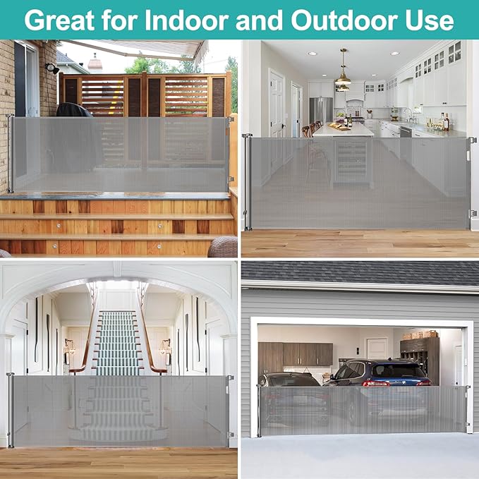 - 42" Extra Tall Retractable Gate: extra tall dog gate is taller than other gates to prevent your babies and dogs from jumping or climbing over the extra tall pet gate.