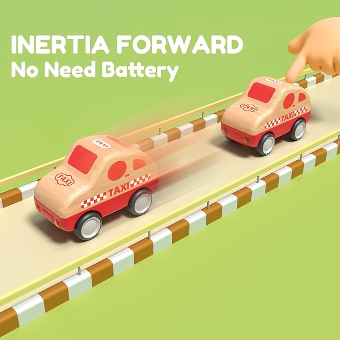 - 3 Wooden Cars: this playset comes with 3 colorful mini cars for your little driver to enjoy! Ambulance, police car and school bus for playing different roles to drive different car toy with friends or partner.