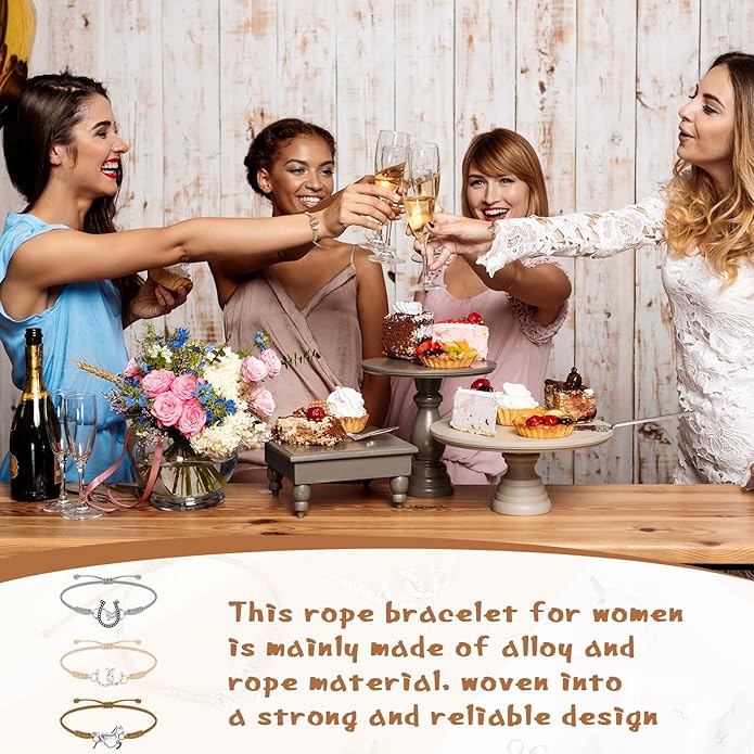 Sureio 48 Pcs Horse Rope Braided Bracelet Gifts Bulk Horse Goodie Party Favors Western Cowgirl Cowboy Adjustable Wedding Bridal Shower Bracelets for Women