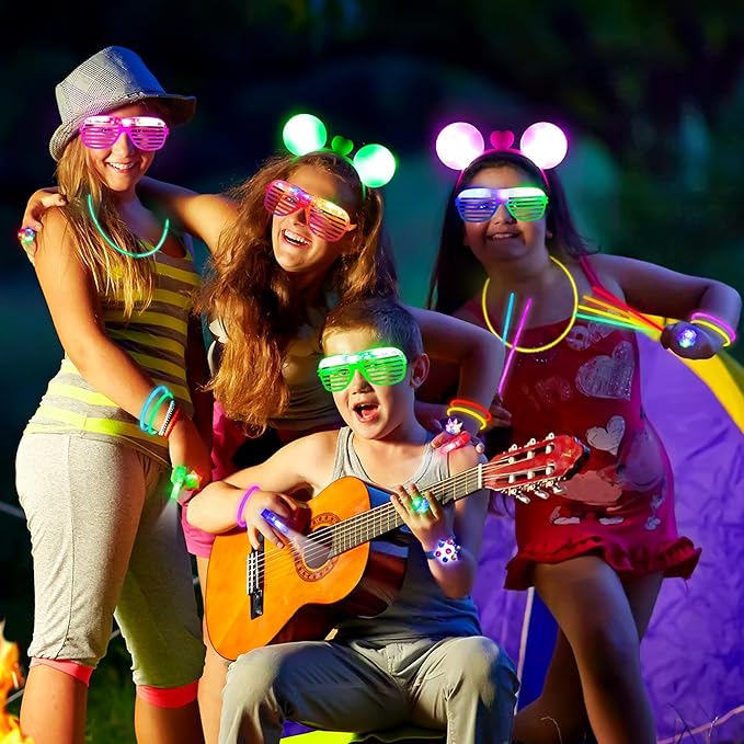 - Endless Fun: Our light up glasses and headbands offer 3 different flashing modes, and the LED finger lights and rings are also with different colors in turns. Perfect neon glow party pack makes you stand out from the crowd. Super bright 50 glow sticks with connectors can create any shape you desire, and bring endless fun.