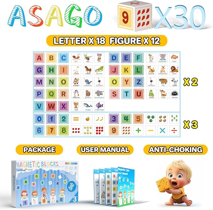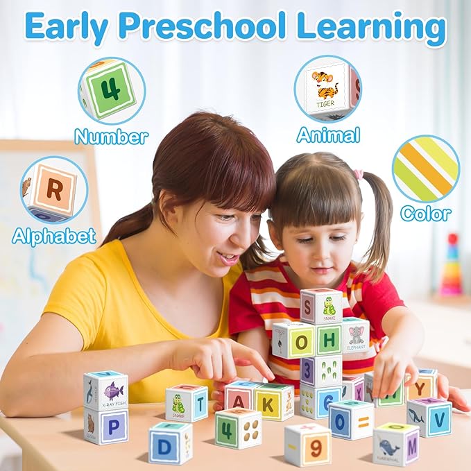 - 【 Colorful Prints 】 : Each block is printed with 6 different patterns, including letters, numbers, math symbols, fruits and animals. The variety of colors and patterns attract children's attention and keep them engaged in the puzzle.