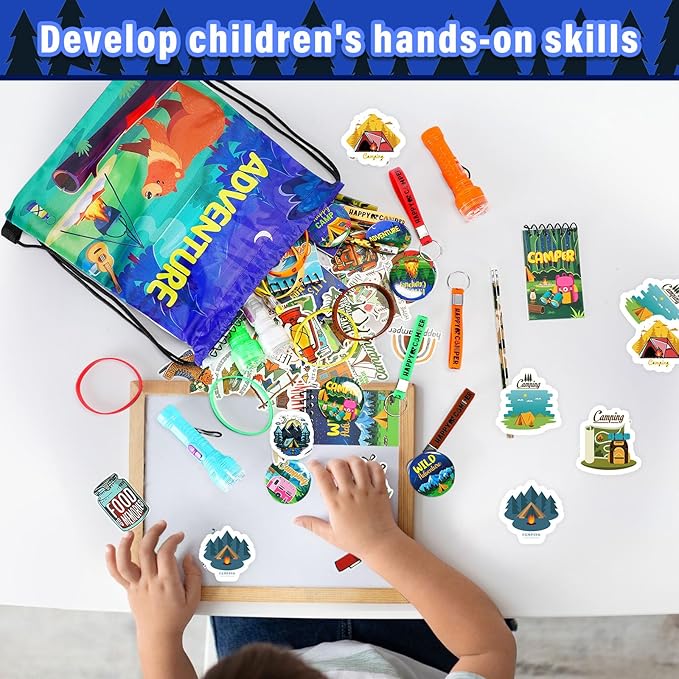 - Educational Toys to Encourage Learning: our camping party favors not only provide endless entertainment but also offer educational value; The camp journal for girls and pencils encourage creativity and writing skills, while the badges and summer camp stickers allow children to explore their artistic side; These interactive elements make our party favors an excellent choice for encouraging learning and imaginative play