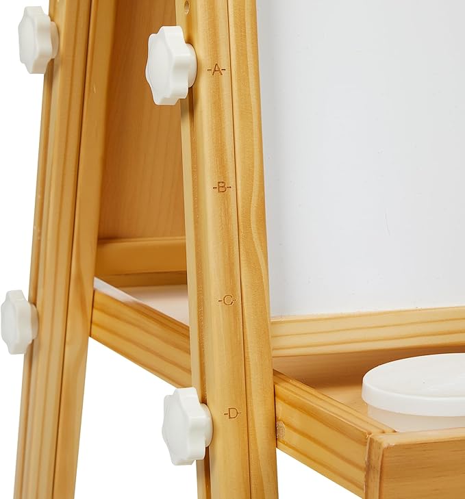• WOOD EASEL: Made to be stable and robust for a younger child. Wood is varnished for easy cleaning and longevity.