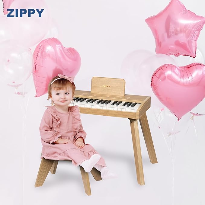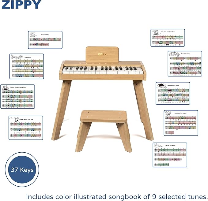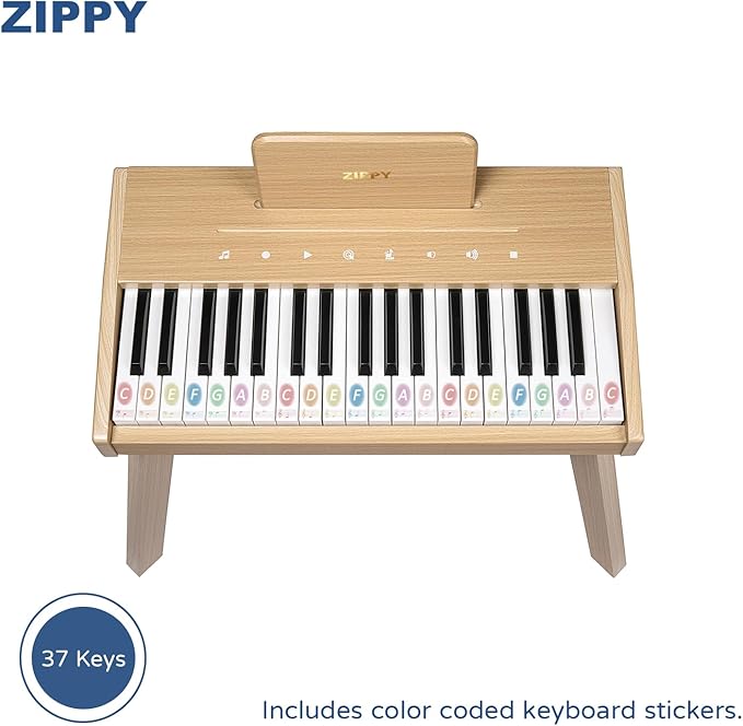 ZIPPY Kids Piano Keyboard, 37 Keys Digital Piano for Kids, Touch Sensitive Control Panel, Built-in Songs, Volume Adjustable, Music Educational Instrument Toy, Wood Piano for 3+ Girls and Boys