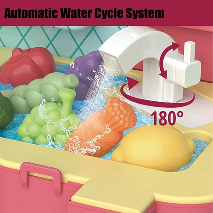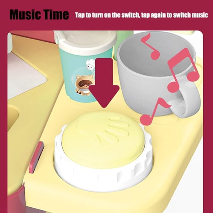 - Cooking Effect: Add water to the induction cooker part from the water injection hole, turn on the switch, the product will be mist, and it is equipped with lighting effects. It can simulate the cooking situation more realistically. After the washing pool is filled with water, the water can be circulated, which is interesting and environmentally friendly.