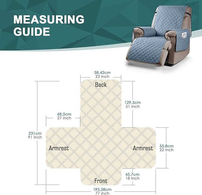 - PERFECT FIT: Great coverage for your recliner, protect your furniture from dirt, daily wear and tear. Fits recliner chairs with a seat width of 23 in. Please measure your chair according to the pictures on the product page