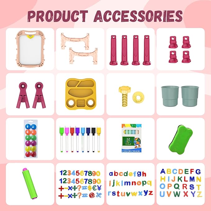 - Combining Fun and Learning: In addition to nurturing artistic skills, children's art easels offer a wonderful opportunity to merge playtime with education. They can be used to teach fundamental concepts such as letters, numbers, shapes, and more, allowing children to learn while engaging in creative activities. To further enhance their learning experience, we provide magnetic alphabet and number tiles as a helpful educational resource.