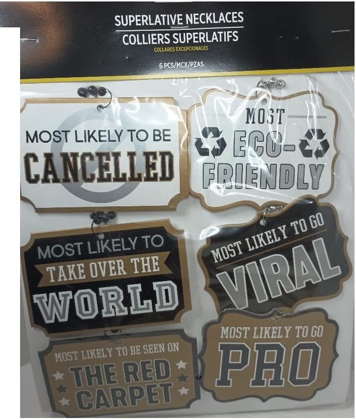 - PACKAGE INCLUDES: 1 set of 6. Assorted design grad superlative necklaces - 16"