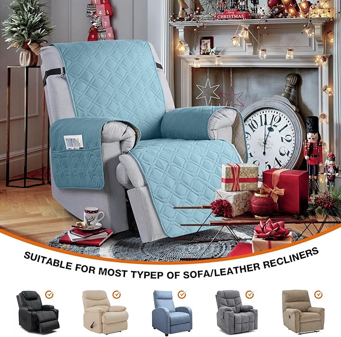 - EASY INSTALLATION & CLEAN: One piece design make the installation easier by simply draping, connecting back straps and tucking seams. Then the recliner chair covers will save your furniture from Puppy slobber and bite marks, kids mischief and spills. Easy removal of cats dogs fur, liquids