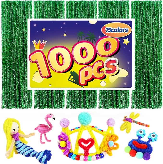Pipe Cleaners, Pipe Cleaners Craft, Arts and Crafts, Crafts, Craft Supplies, Art Supplies (1000 Green Glitter Pipe Cleaners)…