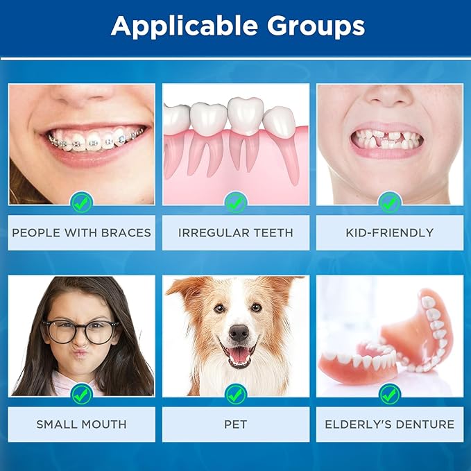 - Soft Feel: Ultra soft bristles brush protect sensitive gums and keep your teeth from damage. Also great for cleaning irregular teeth, and pets' teeth.