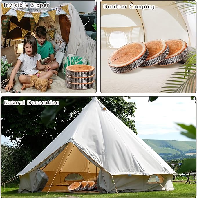 - Vivid and Lifelike Design: the round floor pillows seating adopt 3D digital double sided printing, so that the appearance looks like realistic stump, providing you with a nice visual enjoyment and making you feel like in the forest