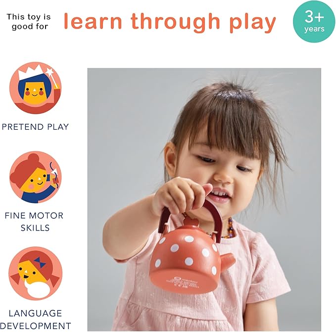• SIPS OF CREATIVITY - Don’t let the Dotty Kettles adorable looks fool you - this delightful kettle is more than just a pretty face! As children play, they develop essential skills like hand-eye coordination and fine motor skills. Pouring, lifting, and serving help strengthen their little muscles while sparking social skills through interactive play. Who doesn’t like to copy mommy and daddy?