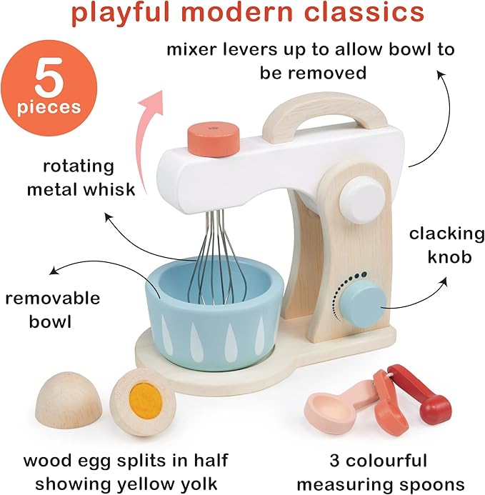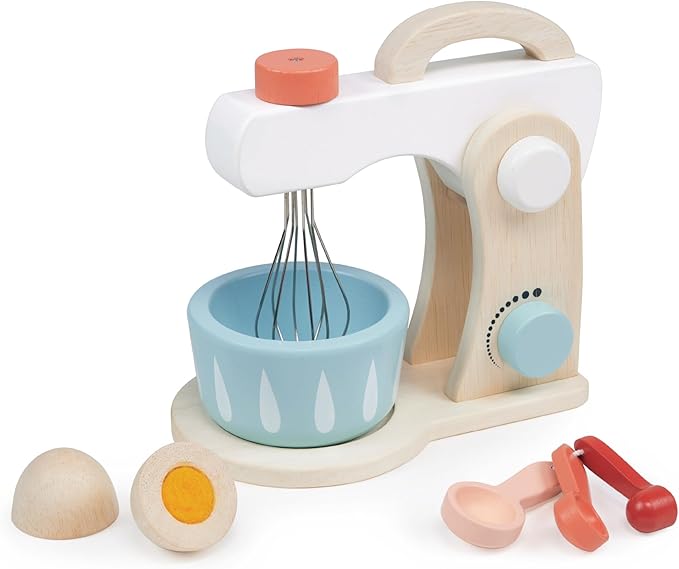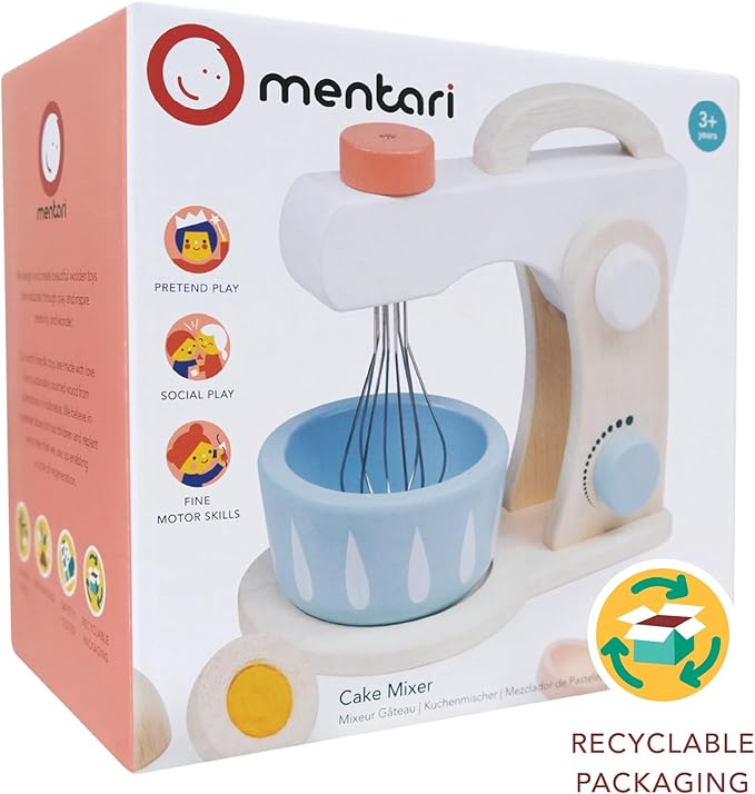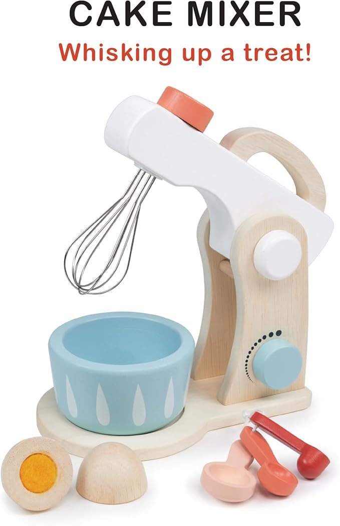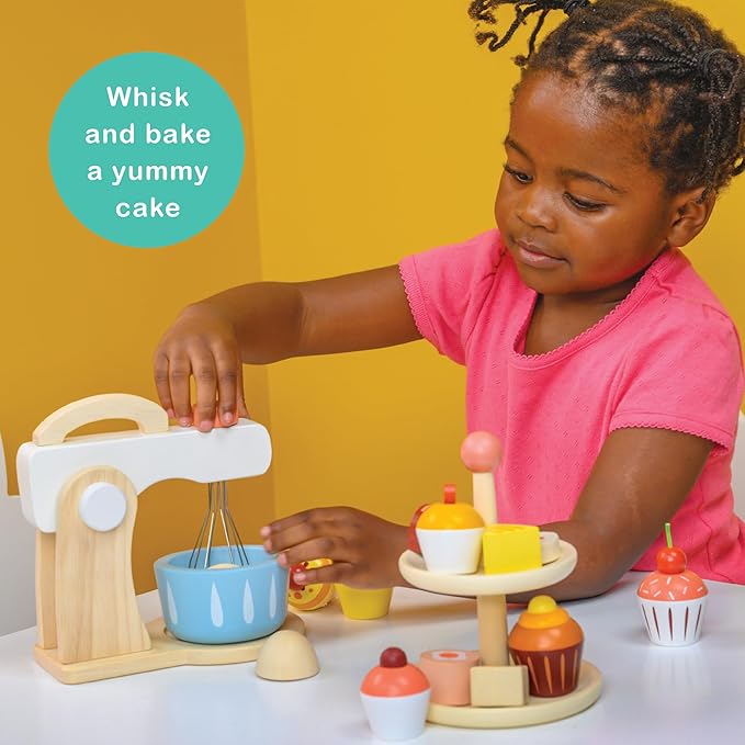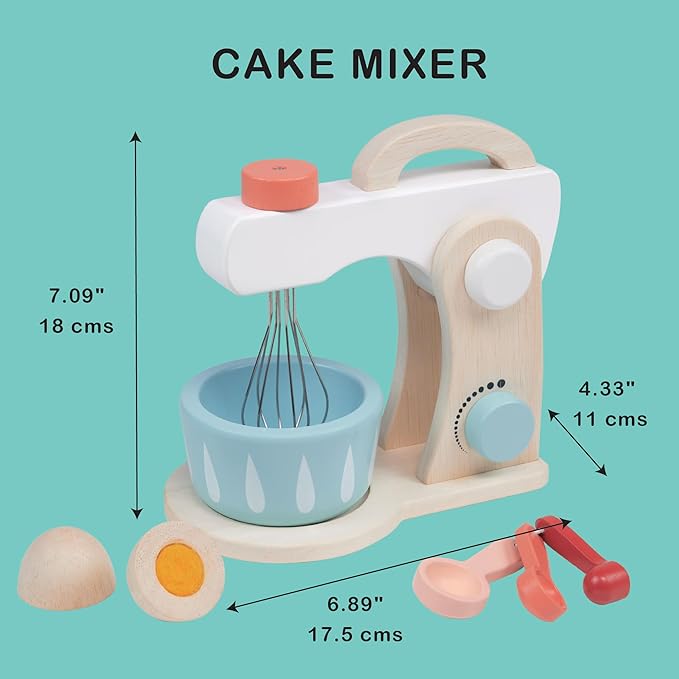 - MIX, MEASURE AND PLAY - Whip up some fun with our delightful Cake Mixer! This mini mixer has all the ingredients for hours of pretend play - perfect for little bakers who love to shake, mix, and stir up creativity! With a top button that turns the whisk in the blue bowl and a clacking speed selector to choose just the right mixing pace, kids can feel like pros in the kitchen. The mixer’s arm lifts to release the bowl, just like a real one, making it easy to crack into their baking adventures.