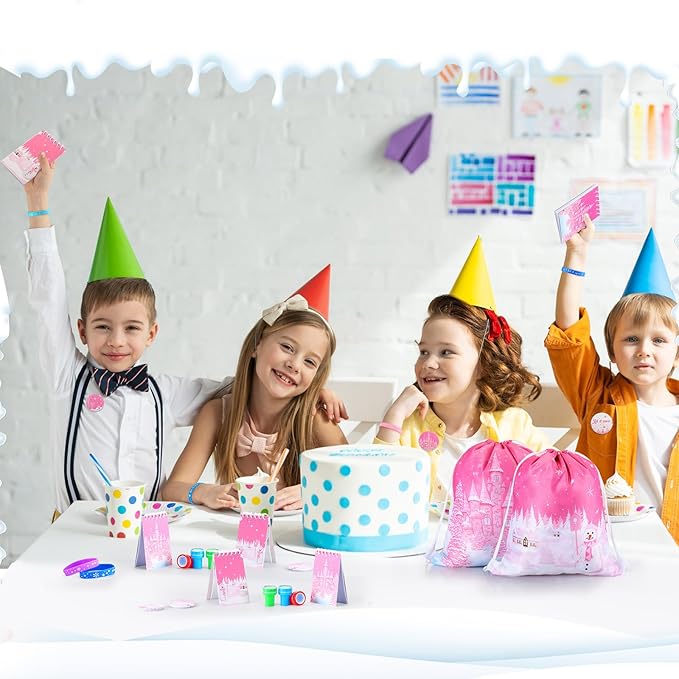 - Abundant Party Favor Set: the 140 pcs birthday party favors you will receive are composed of 12 drawstring bags, 18 notebooks, 12 button badges, 12 silicone wristbands, 12 bendable pencils, 50 sheets of science stickers, 12 snowflake stampers and 12 silicone keychains, you'll have enough to gift your guests; This abundant set includes something you need to host a successful party, saving you the time and hassle of securing your party reliable plan