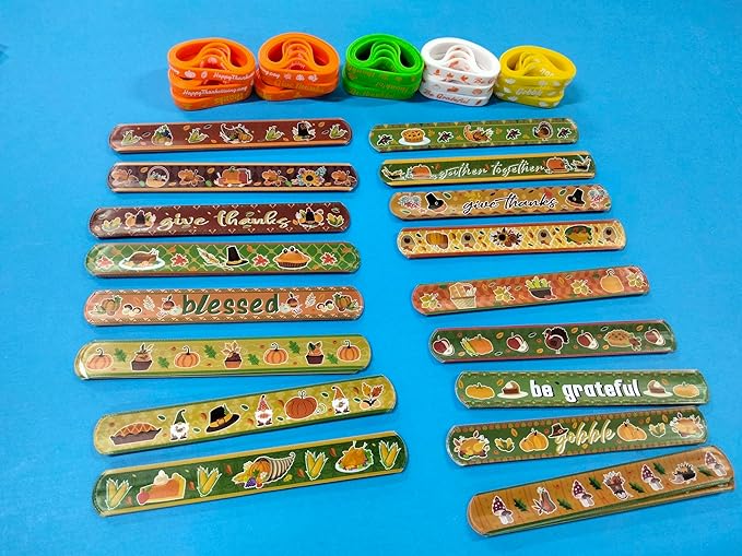 - Thanksgiving Party Favors: the package contains 72 pieces Thanksgiving slap bracelets in 40 different styles and 72 pieces Thanksgiving silicone bracelet bulk in 5 styles; Ample quantity and styles can meet your use and share needs for Thanksgiving and fall themed party favors