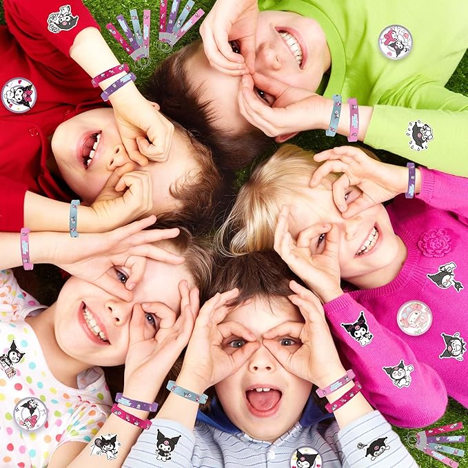 - [Quality Material]: Our kawaii themed party gifts are made of high quality materials, the bracelet is made of high quality silicone, which is safe and non-toxic, the badge is made of environmentally friendly materials, the stickers are clear and colorful, and the materials used are recycled materials, which greatly reduces the harm to the environment