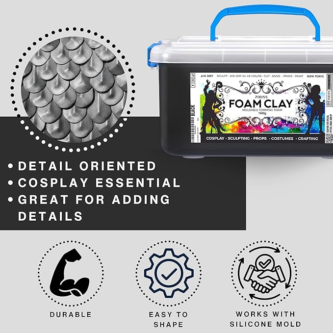 - Foam For Cosplay - Pixiss foam clay was created with cosplay in mind, with it you can create cosplay pieces that you only need to air dry to be able to use and wear.