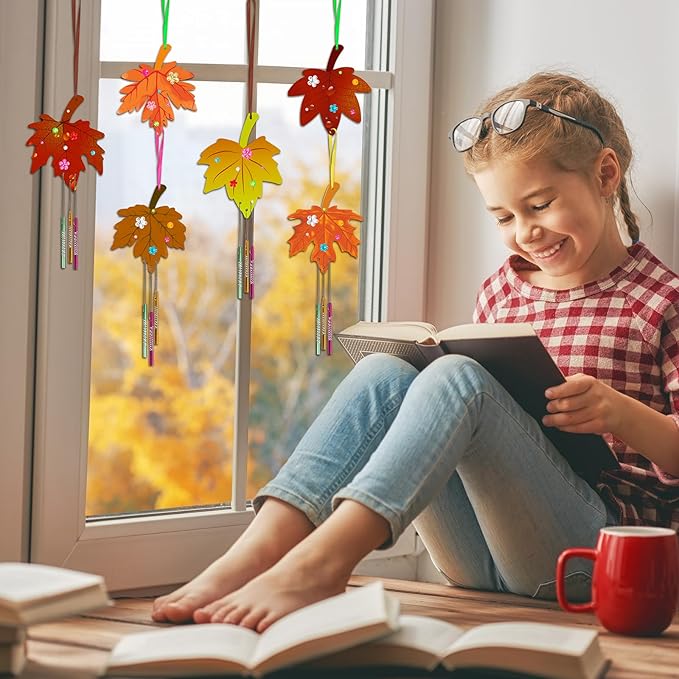 - Great Fall Craft Lovers Gifts:DIY wooden maple leaf wind chimes a lovely hanging fall ornaments for Fall crafts,Thanksgiving crafts, Halloween crafts,children's arts and crafts class, family party with a bunch of grade school kids,it is also a Fall decoration fo kids,can boost a warm and joyful atmosphere for your party or as great fall gift for kids.