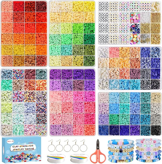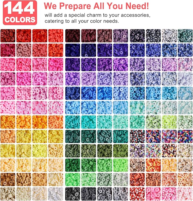 Redtwo 23000 Pcs Clay Beads Bracelet Making Kit 144 Colors 7 Boxes Flat Polymer Heishi Beads Set for Friendship Jewelry Making with Pendant Charms Crafts Gifts for Girls Ages 6-12 Kids Adults