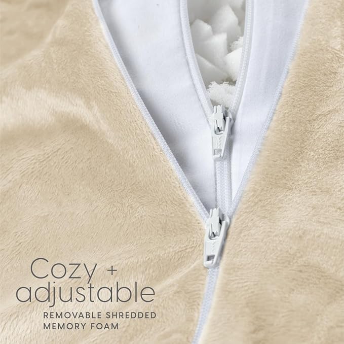 Milliard Reading Pillow with Shredded Memory Foam, Large Adult Backrest with Arms, Back Support for Sitting Up in Bed with Washable Cover (Sit up Pillow) (Cream)