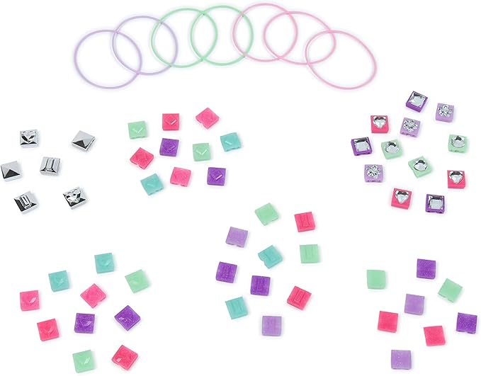 - Includes: 38 Glitter Gem Beads, 12 Inset Gem Beads, 6 Silver Gem Beads, 7 Elastics