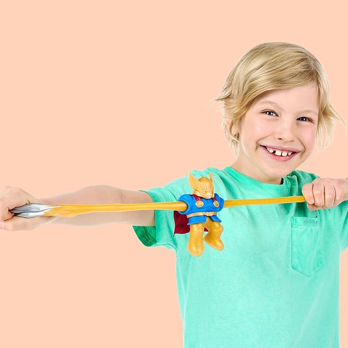 - Squish and stretch your Marvel hero Battle Attack Thor up to 3x its size and watch as he returns to his original shape.