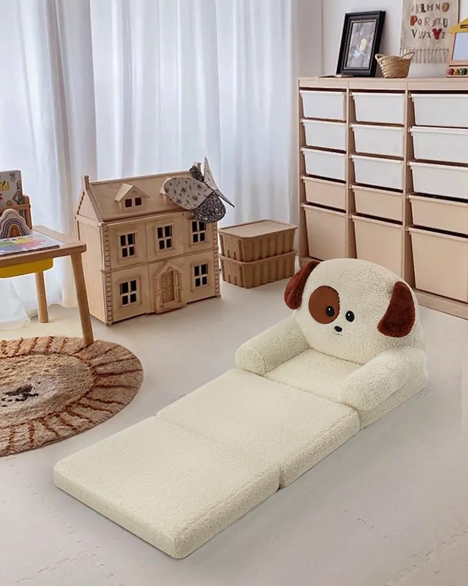 MOONBEEKI Comfy Toddler Chair, Kids Couch Fold Out to Lounger, Foldable Baby Sofa Plush for Girl and Boy Age 18 Months and Up (Charlie Dog)