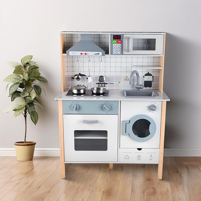 - CLASSIC GAME & TOY: This bright and colourful Wooden Kitchen Set and inspire early imaginative play by helping children to understand the concept of "making" food to eat.