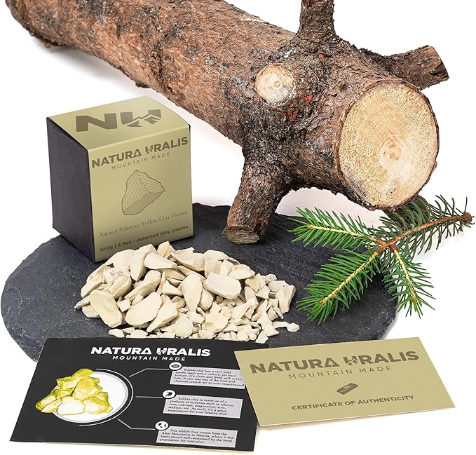 - TEXTURE & FORM | Our Siberian yellow clay is the perfect balance of earthy, velvety and somewhat dusty. However, it’s also very smooth and almost creamy to the touch. It feels and looks almost malleable on the surface, and is quite soft in geological terms. It can be broken by hand with little effort. The earthy and gentle feel of the clay is very pleasant and has a primal quality. It has a mild and natural odour of nature and pristine purity.