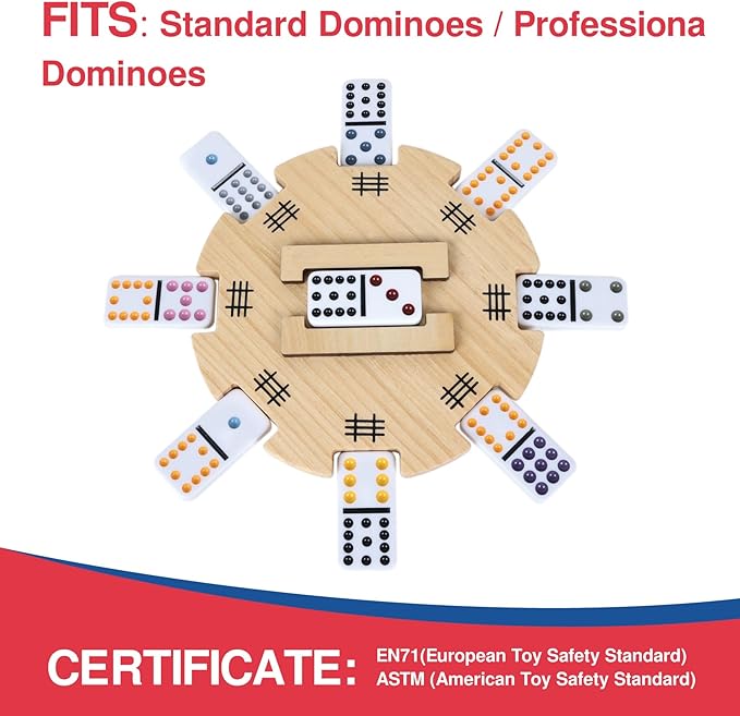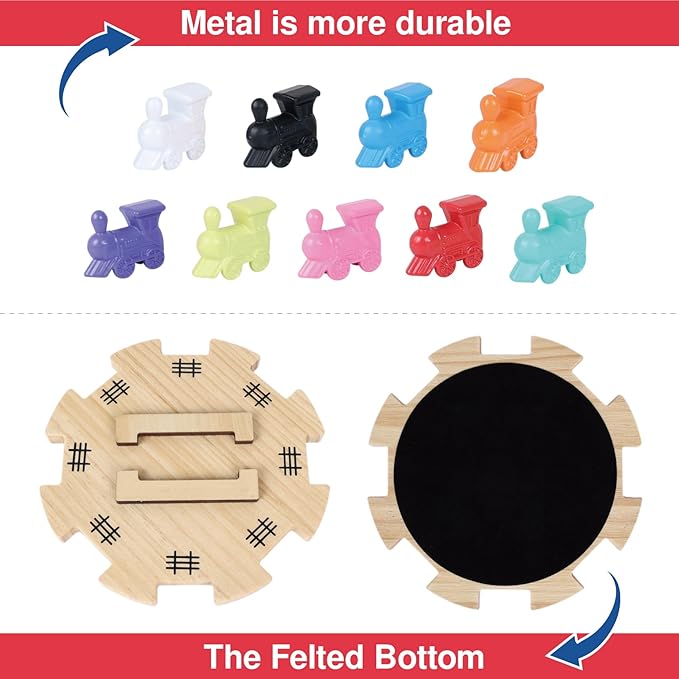 - 【PREMIUM PINE WOODEN HUB】Our Mexican Train Dominoes accessories come with a well-made wooden hub made from quality pine. The hub features a soft nonwoven cloth at the bottom, providing anti-slippery protection for your table. The flat surface ensures that your train markers stay securely in place during gameplay.